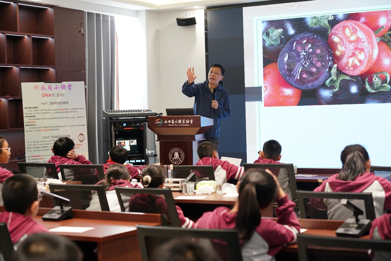 为积极响应中国科协高校科普品牌示范工程(高校星火馆)建设,发挥星火馆科普示范作用,9月24日,山西农业大学科研部联合后稷实验室(山西农业大学星火馆之一),迎来了太原市仁杰小学六年级的“小访客”。本次活动由山西省科协和太原市迎泽区教育局共同组织,省科协高校星火馆项目负责人程丽娟副研究员和迎泽区教育局教科研中心闫亚红教研员带队,让小学学子走进省级科研平台,沉浸式感受农业科学的魅力。