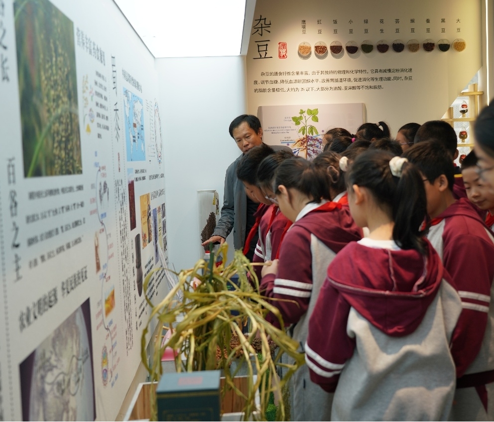 首先,后稷实验室姜亮博士系统介绍了山西省后稷实验室的建设背景与科研使命,使在场人员深刻认识到实验室在推动杂粮育种创新、服务国家粮食安全战略中的核心作用。随后,姜亮博士带孩子们观察了谷子、高粱、荞麦等杂粮的种子标本,认识杂粮的真实模样,并参观了由这些杂粮加工生产的各类产品,让孩子们直观地了解日常熟悉的美食是如何从田间走向餐桌的。这场趣味盎然的种子发现之旅,将探究农业科学的种子播撒在孩子心间。