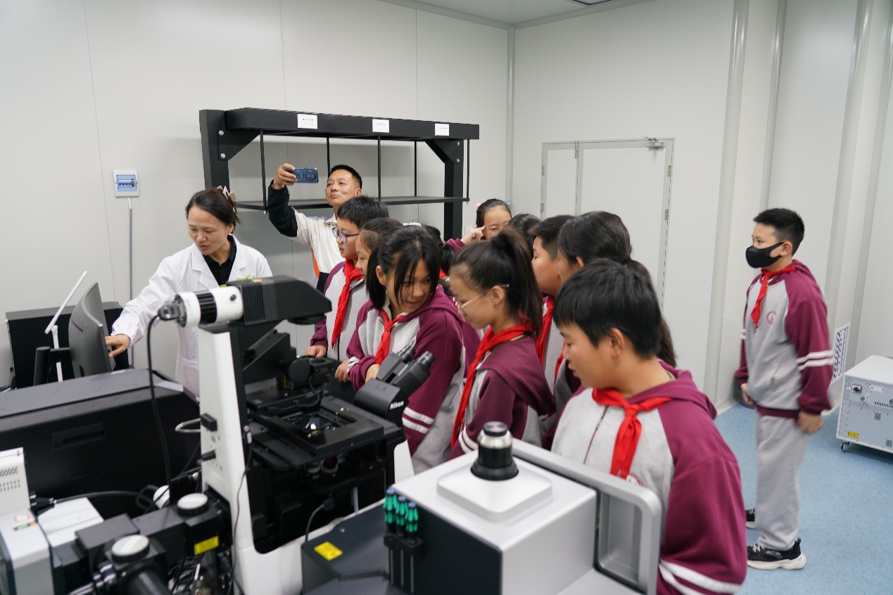 在王友梅博士的引导下,孩子们通过高精度的激光共聚焦显微镜,打开了一扇通往微观宇宙的窗口。他们清晰地观察到不同作物组织内形态各异的细胞结构,这些奇妙的图像仿佛一幅幅生命的实时画卷,生动地展现了细胞世界的动态之美,让同学们直观感受到了生命构造的精妙与奥秘。